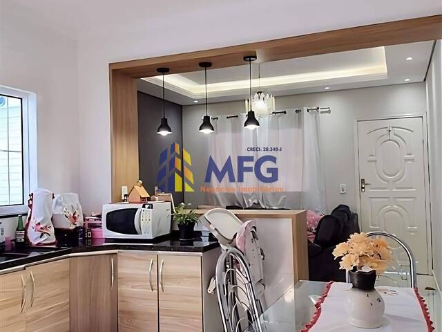 Casa térrea com sala de estar, cozinha, banheiro social, 2 dormitórios sendo 1 suíte, área de serviço, quintal e 2 vagas de garagem cobertas. Área gourmet, churrasqueira